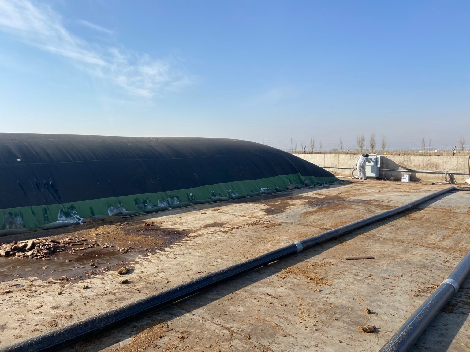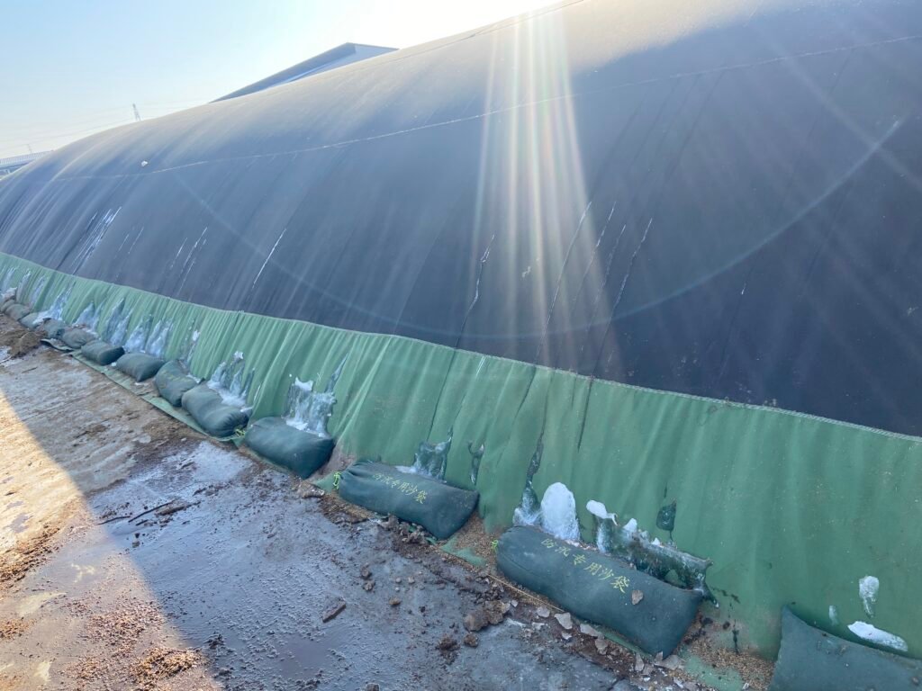After extensive evaluation the farm installed six 200 m³ e-PTFE membrane composters from Jiesonglin Technology. The closed aerobic process works as follows: