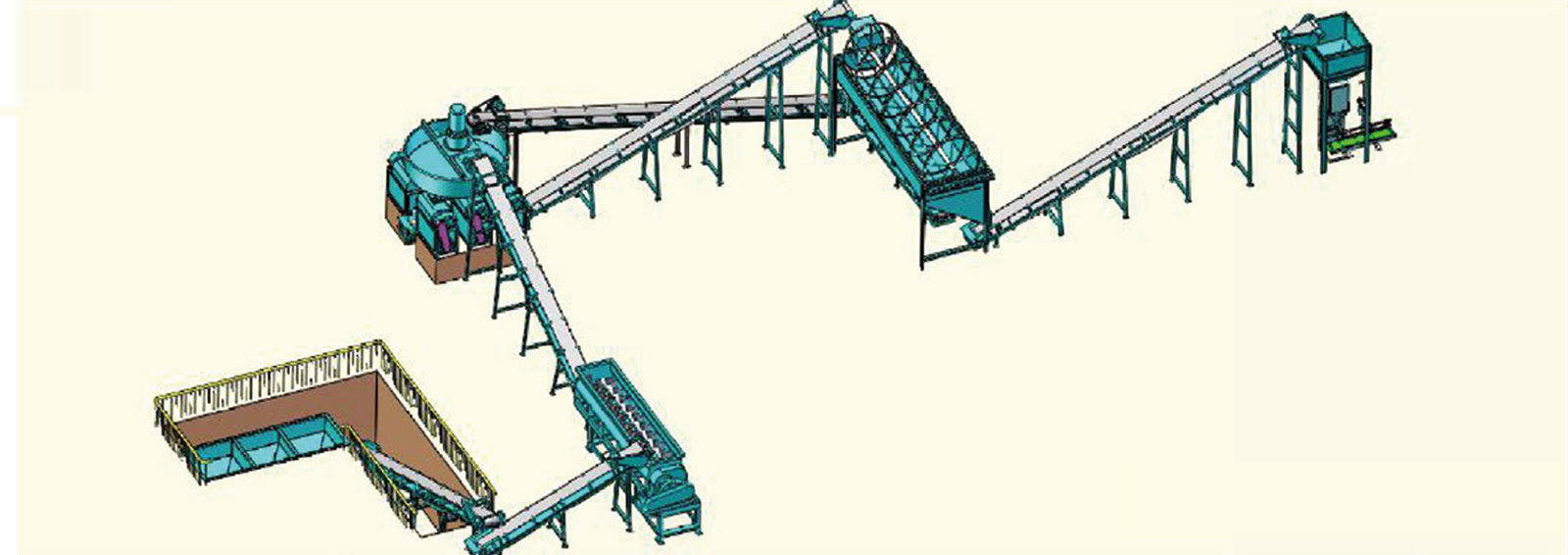 | Stock bin | Grinder | Screening Machine | Granulator | Packaging machine |